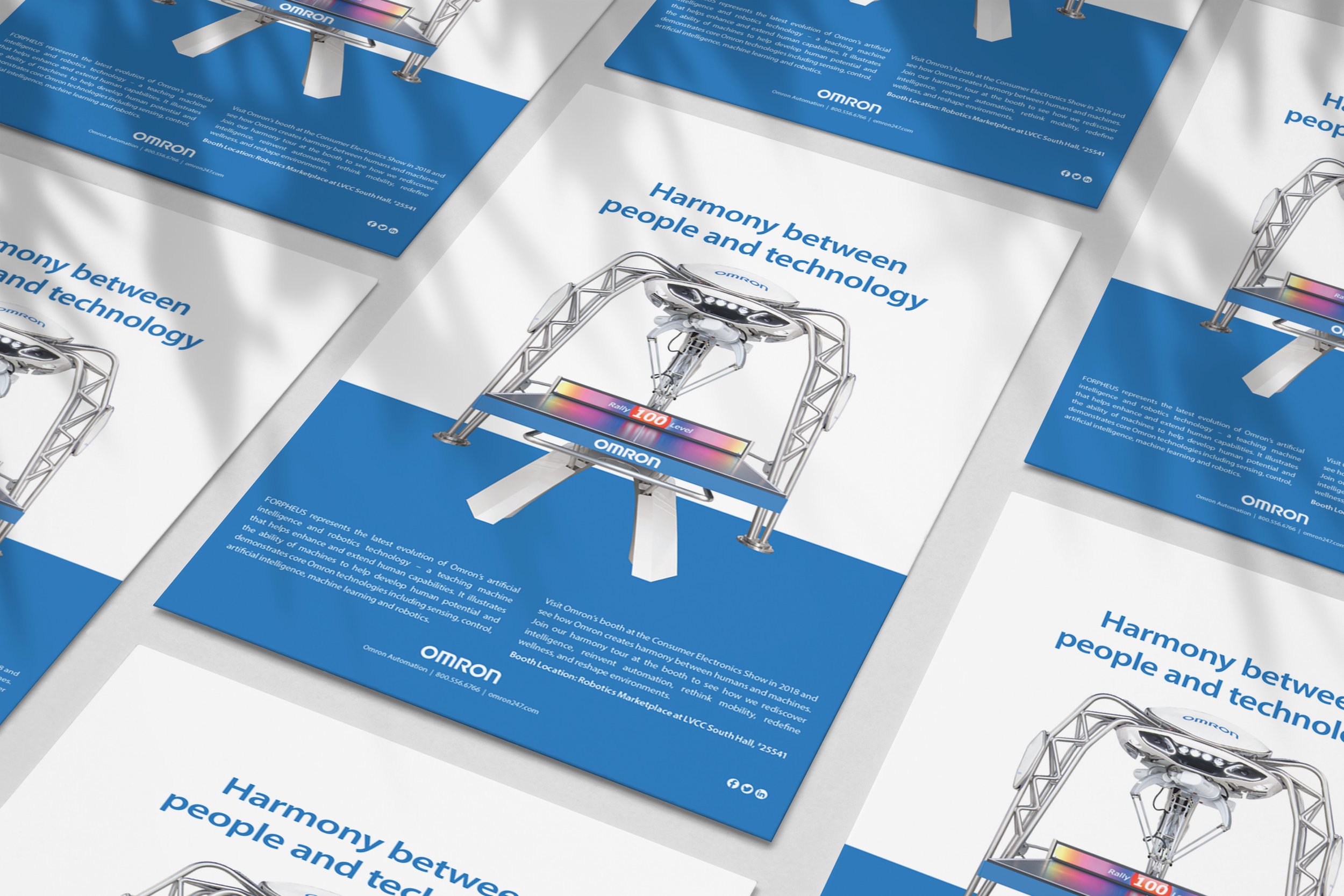 Omron’s AI-powered ping-pong playing robot debuted at CES, and this full page magazine ad highlights a harmonious blend of robotics and machine vision. Forpheus, capable of tracking a ping pong ball 80 times per second, predicting smashes and reads player emotions. The clean layout execution pushed Forpheus to center stage (as it usually does!).