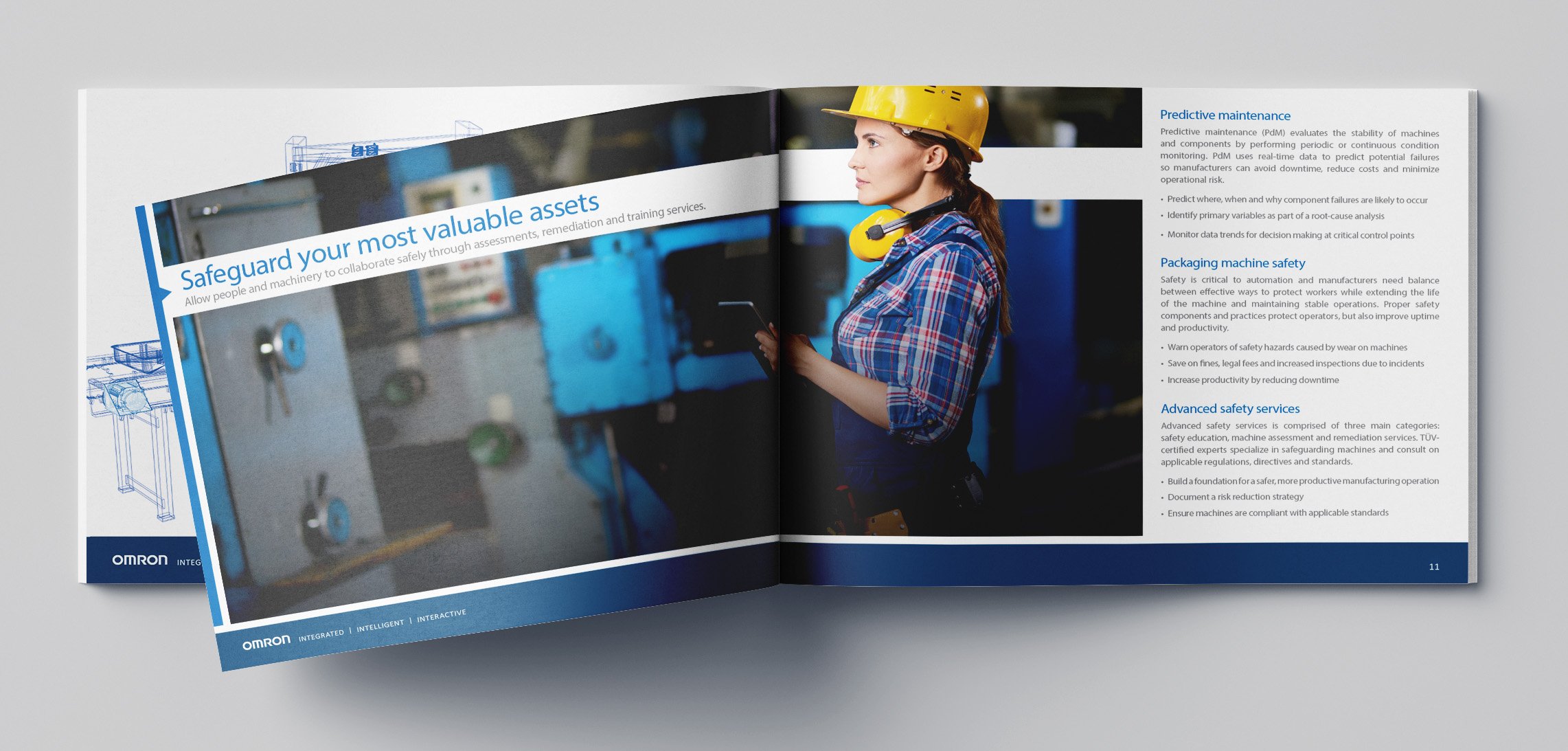 Challenge Create a safety components piece offering safety service solutions. Historically, there was an emphasis on products, so this was a departure from the traditional strategy. The piece will also highlight solution-oriented products and an associated value to ensure an efficient manufacturing line with reduced downtime.