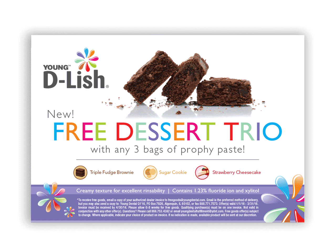 The D-Lish dental varnish rebrand goal was to feel more fun and engaging highlighting a new dessert flavor variety.
